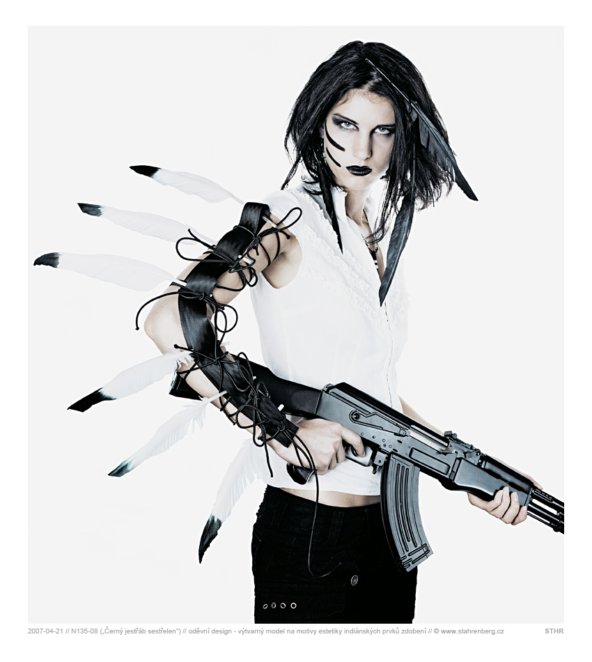 Výtvarný model na indiánsko-technické motivy. Středoformátový fotoaparát Mamiya RB67 Pro SD, objektiv: Mamiya KL90/3.5L, materiál: Kodak. Negativ: N135-08, sken a digitální úprava (zatím bez finální verze v plném rozlišení). |